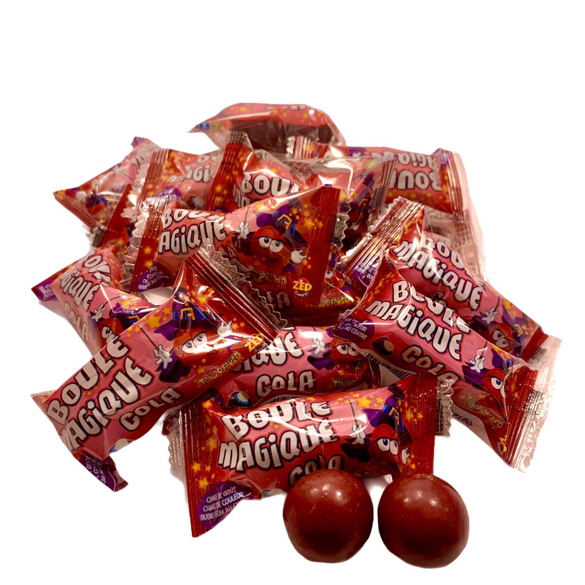 La boule magique Cola est un chewing-gum qui possède plusieurs couches. Le goût change au fur et à mesure qu’on la suce. Le bubble gum est au centre du bonbon.