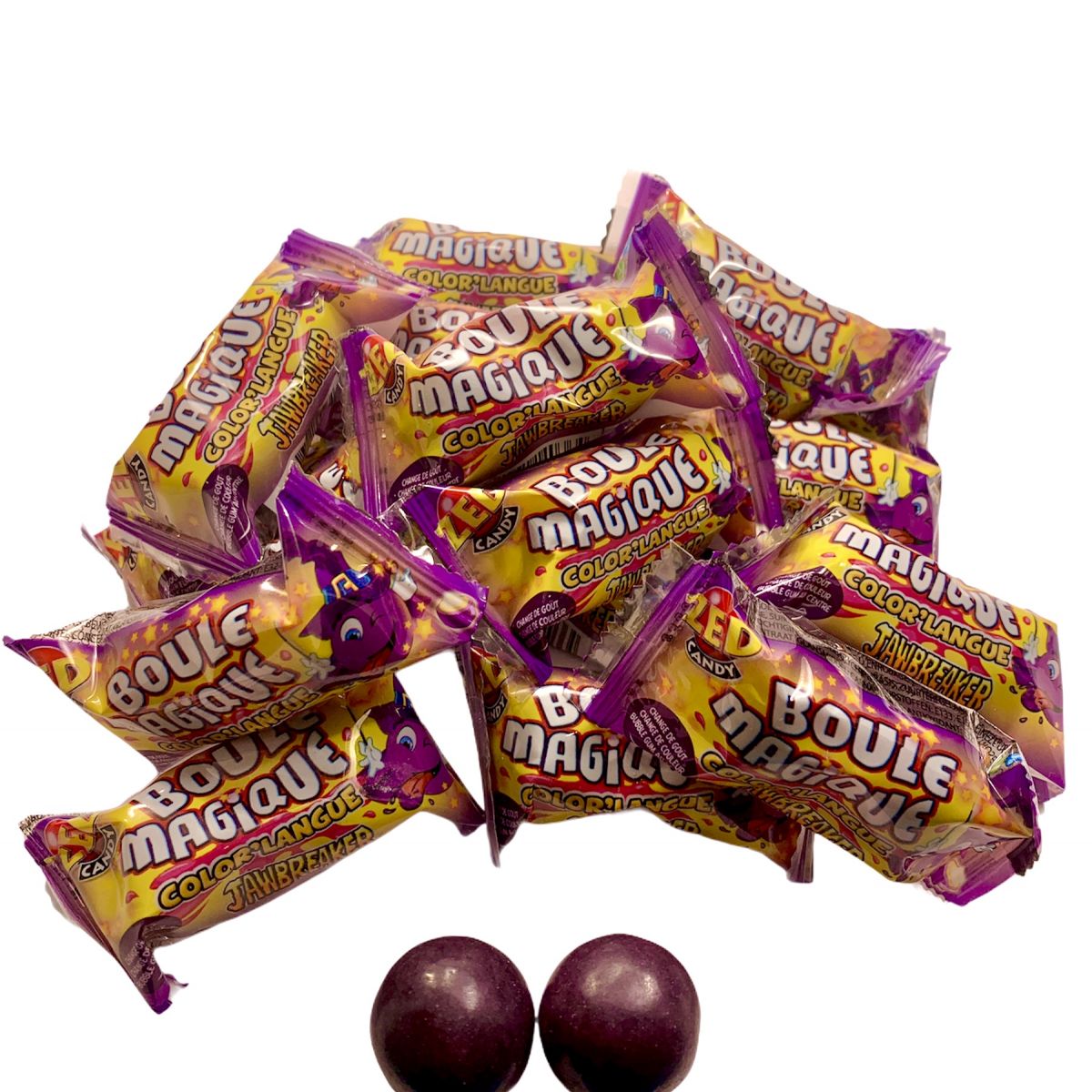 La boule magique est un chewing-gum qui possède plusieurs couches. Le goût change au fur et à mesures qu'on la suce. Le bubble gum est au centre du bonbons.